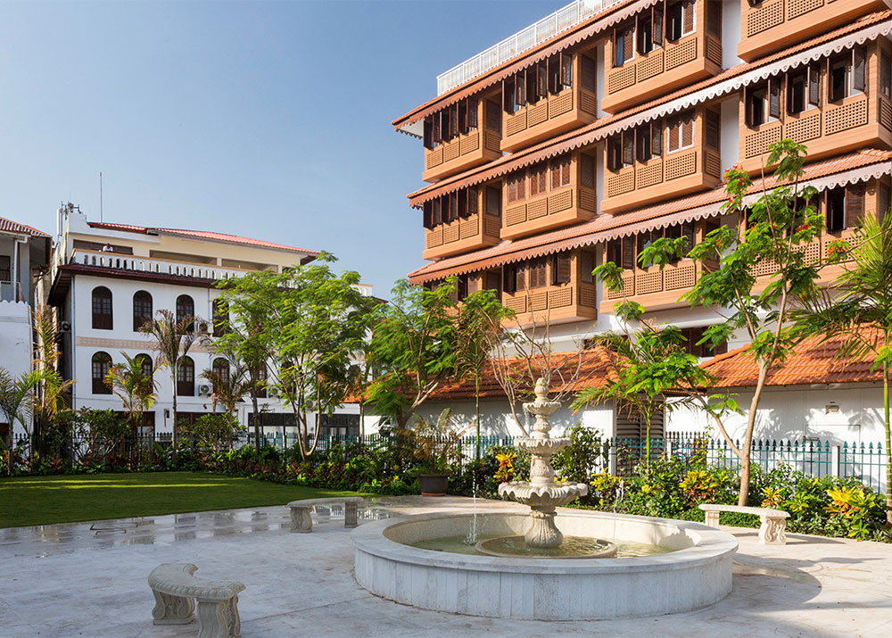 The hotel is housed in two buildings, one of them Mambo Msiige, a building steeped in history, grace and mystique with a story dating back to the 17th century. A typical Zanzibari mansion, centered round a peaceful courtyard, a retreat from the summer heat, Mambo Msiige is a unique gem with architecture that embraces Swahili culture alongside Arab, Persian, Indian and European elements. The new and purpose built Zamani residence connects to Mambo Msiige, blending old with new, historic with contemporary.